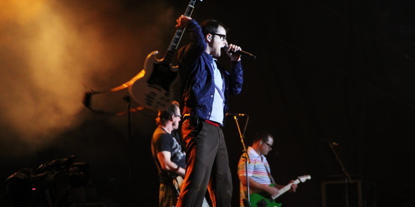 On Friday, Rivers Cuomo and company climbed atop the Hinano Cafe in Venice Beach and played an acoustic five-song set to a crowd that likely did not fully expect to find them there. They played “Undone,” “Buddy Holly,” “Island in the Sun,” and “Say It Ain’t So,” plus “Go Away” with Best Coast’s Bethany Cosentino joining in. It was intimate and unhurried, the kind of performance that makes you remember why those songs became what they became.